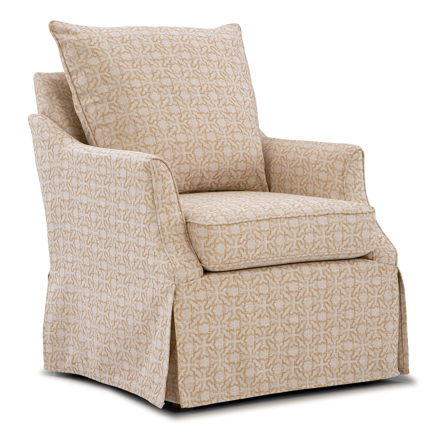Whether it’s the quiet curves of the step-back arms, the tall cushioned back designed for long conversations, or the way the skirt is just short of grazing the floor—this chair doesn’t shout for attention. Instead, it quietly complements your space with gentle grace and timeless versatility.