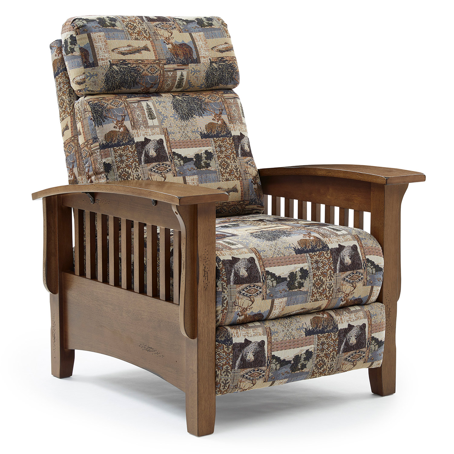 The Tuscan recliner is rustic and relaxing. This mission style recliner offers the solid, handcrafted look of the mission design philosophy. The Distressed Pecan finish gives the wood paneling a warm feel that will accent the fabric of your choice for the supportive cushions. Not only does this offer the style appeal of mission style furniture, but has the outstanding comfort that a recliner offers. Choose from a diverse cover offering to make it your own.
