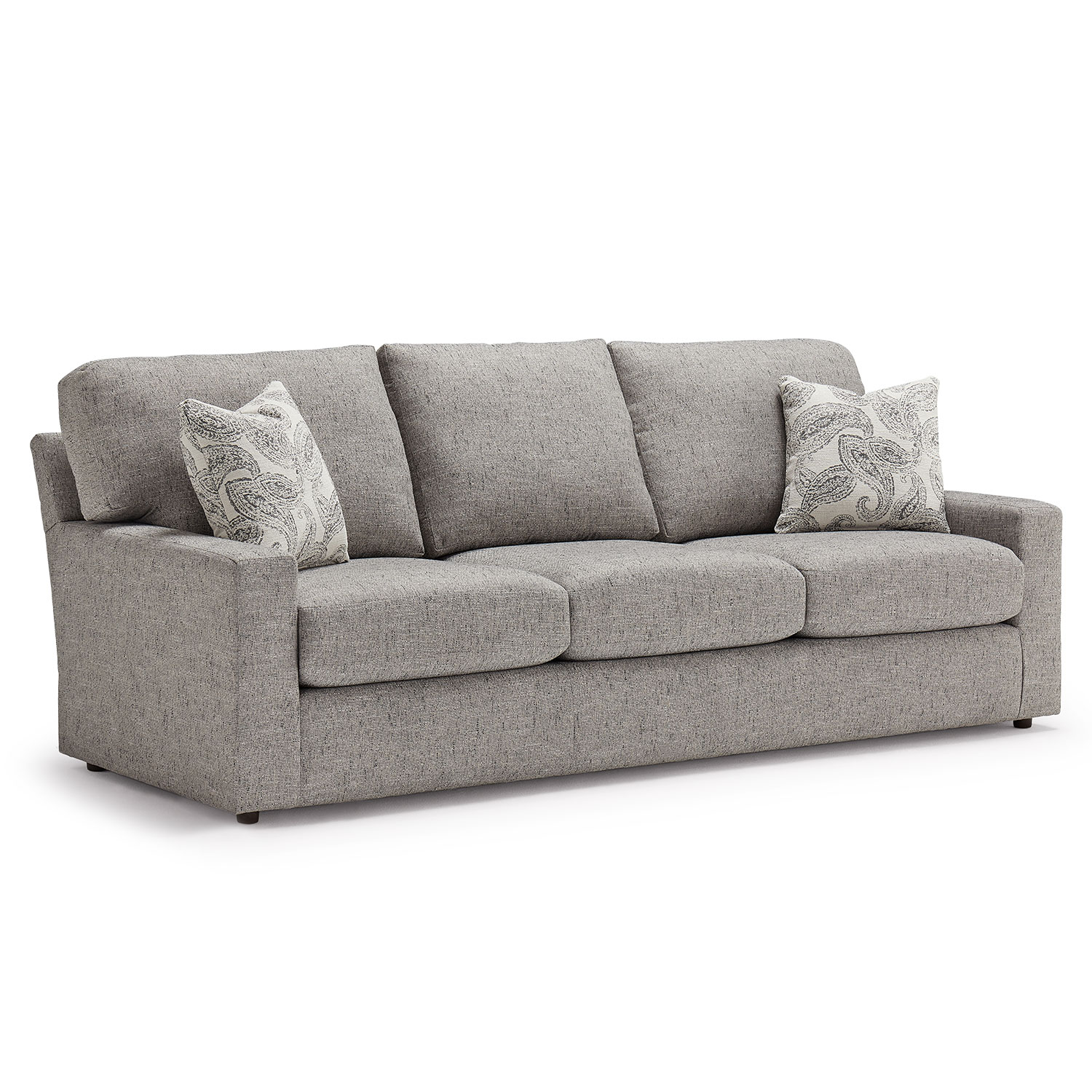Extreme size meets extreme comfort with our Dovely sofa. Stretching a lengthy 95", its transitional design makes it equally comfortable and stylish. With three loose-back cushions immensely filled with lush pillow fibers and feature bottom zippers for fiber adjustment. Three reversible seat cushions utilize HR seat foam that's both soft, yet sturdy. Choose from over 700 fabric choices and two pillows in fabric choice. Made in the USA by fine craftsmen.